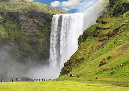 Vik - Seljalandsfoss - Skogar Museum - Vik. Journey to the mesmerizing Seljalandsfoss, one of Iceland’s most famous and picturesque waterfalls with a walkway behind it. Visit Skogar Folk Museum with its turfbuilt homes and outstanding collection of artifacts covering all aspects of Icelandic life. Nearby, view the impressive Skógafoss waterfall, one of the largest in Iceland. Later, see Reynisfjara, a black volcanic sand beach surrounded by basalt formations, cliffs scattered with caves, and rich bird life including the Fulmar, Black Guillemot, Razorbill, Gannet and various types of seagulls. See the unique natural rock formations at Dyrhólaey. After dinner, gaze at the sky in search of the northern lights, a truly spectacular sight. (B, D)